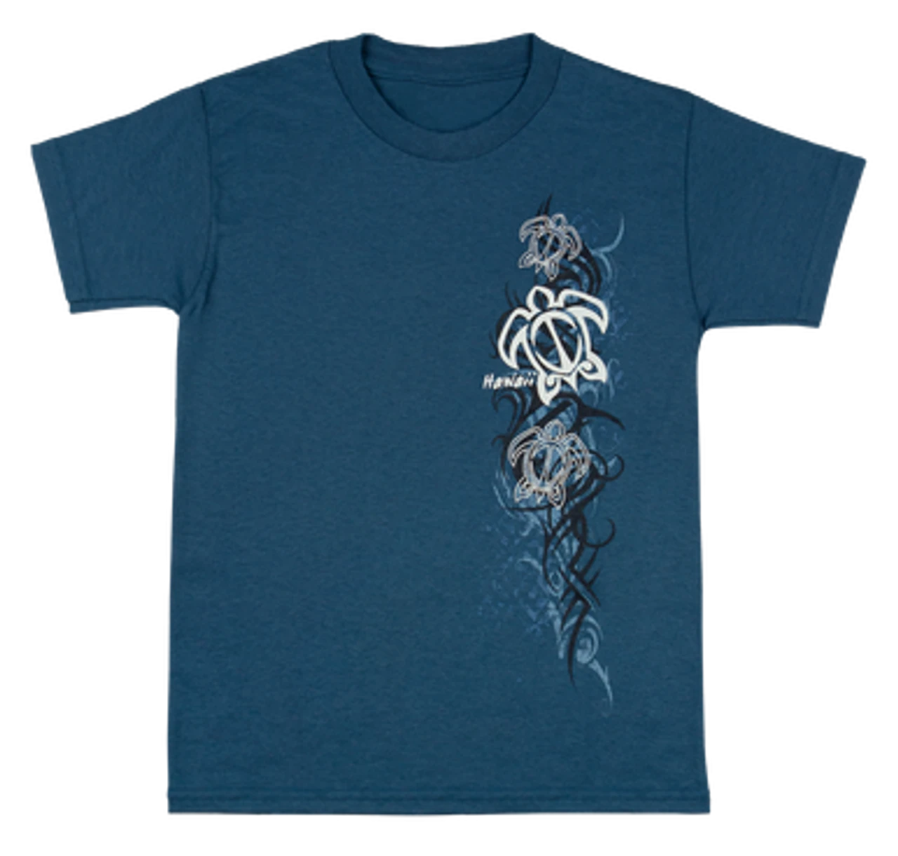 Hawaiian Performance Surfwear® Child’s Tee – Tribal Honu: Blue