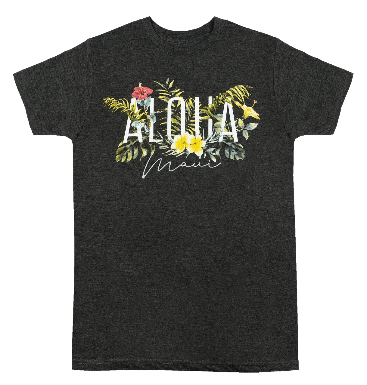Ladies Crew Neck Tee – MAUI Garden: Charcoal Heather
