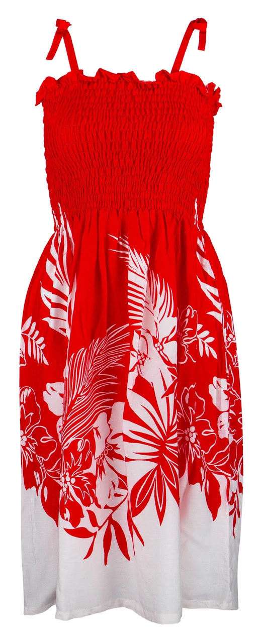 Ladies Elastic Tube Dress - Hibiscus Palm: Red
