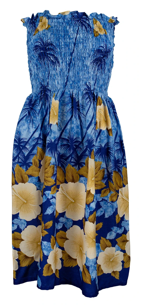 Ladies Short Elastic Tube Dress – Hibiscus Palm: Blue
