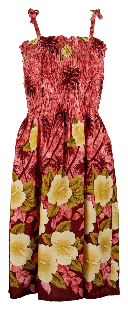 Ladies Short Elastic Tube Dress – Hibiscus Palm: Red