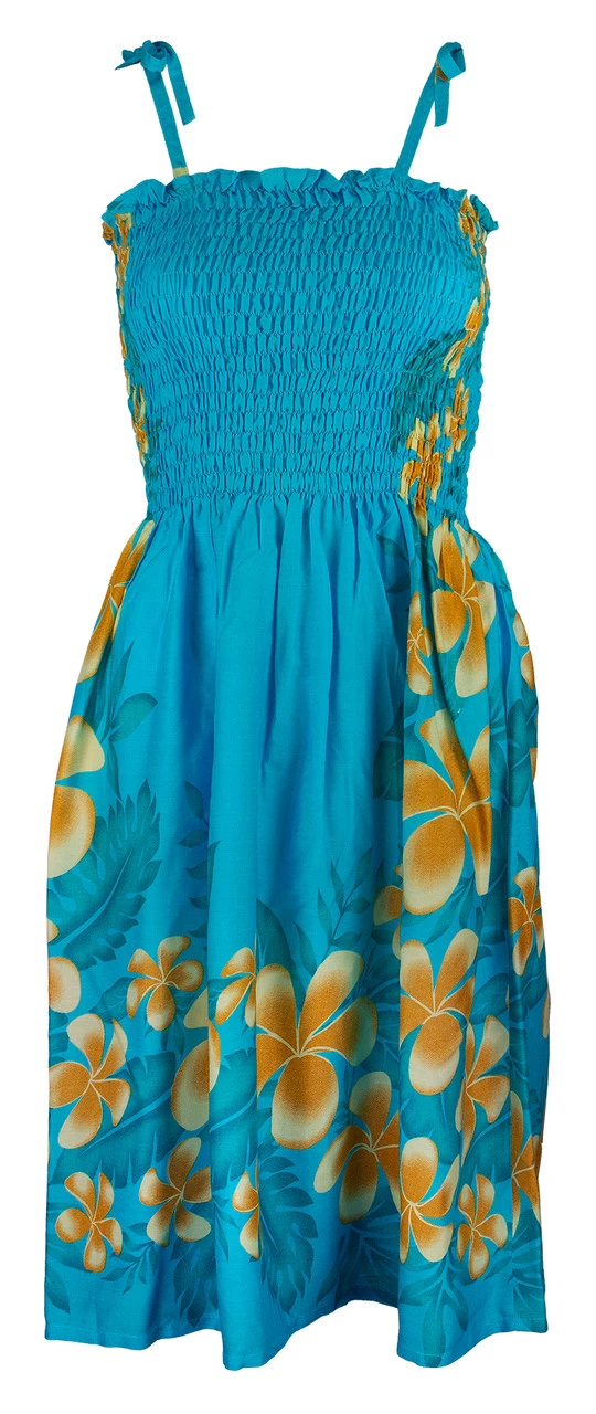 Ladies Short Elastic Tube Dress – Plumerias: Turquoise
