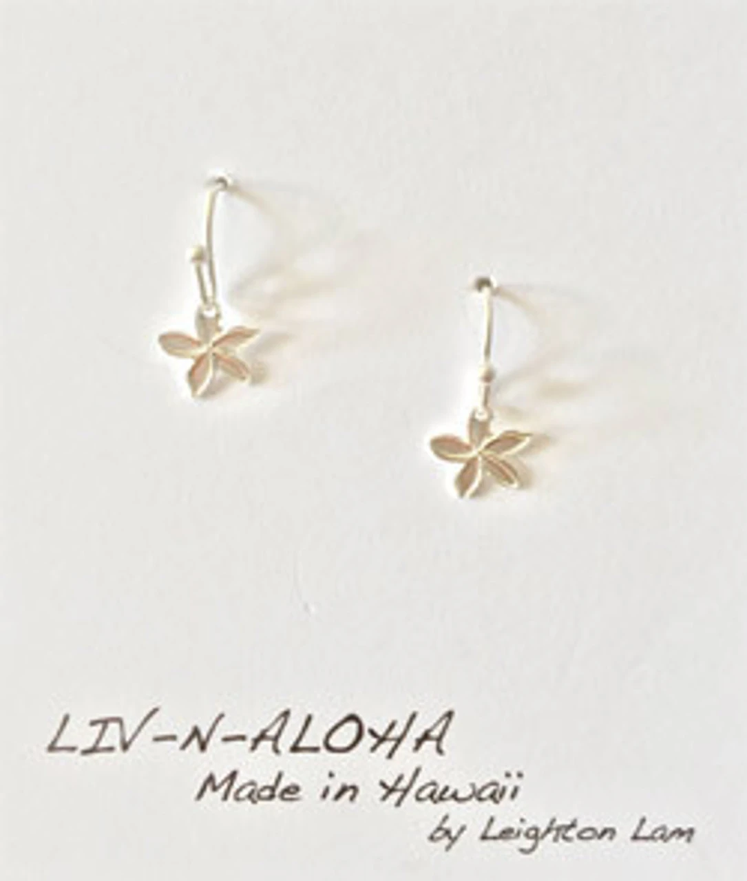 Liv-N-Aloha® Silver Mini Plumeria Solid Dangle Earrings