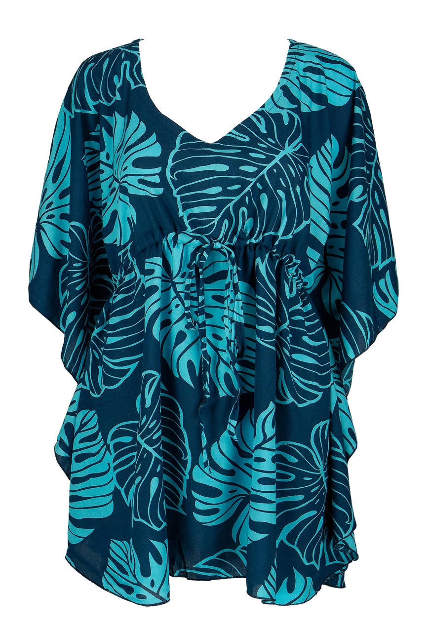 Napua Collection Cover Ups: Monstera Leaf – Navy/Blue
