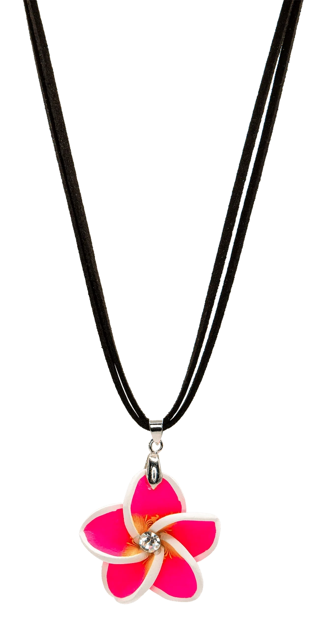 Plumeria Pendant On Corded Necklace: Pink