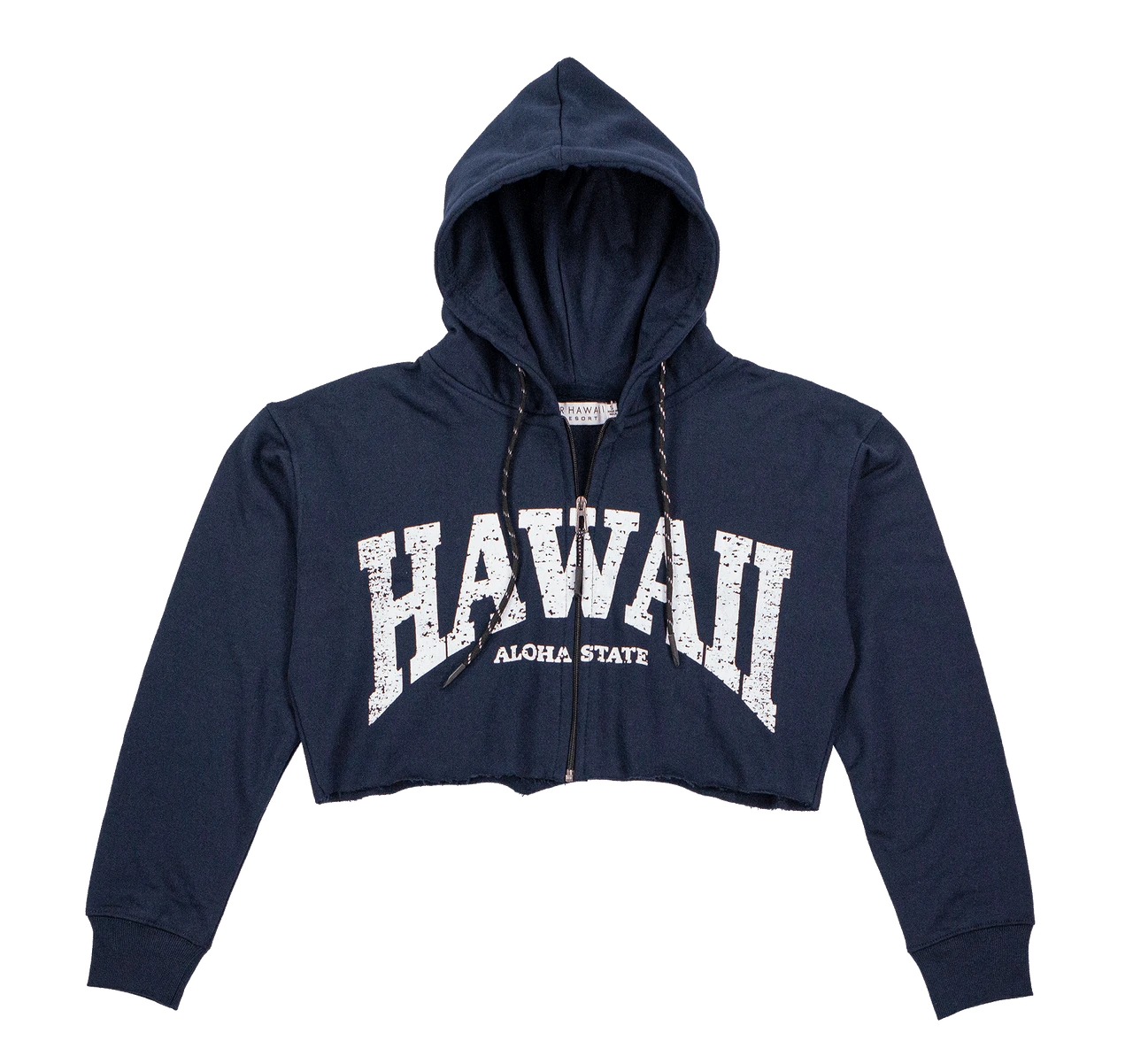 Robin Ruth® Cropped Sweatshirt Hoodie Zip Up – Hawaii Arch: Navy