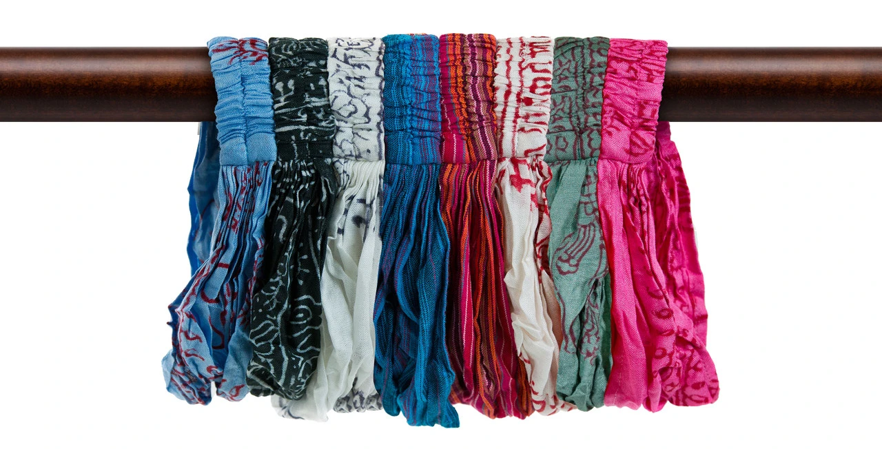 High quality cotton head wraps made in Nepal and India in batik and stripe designs.