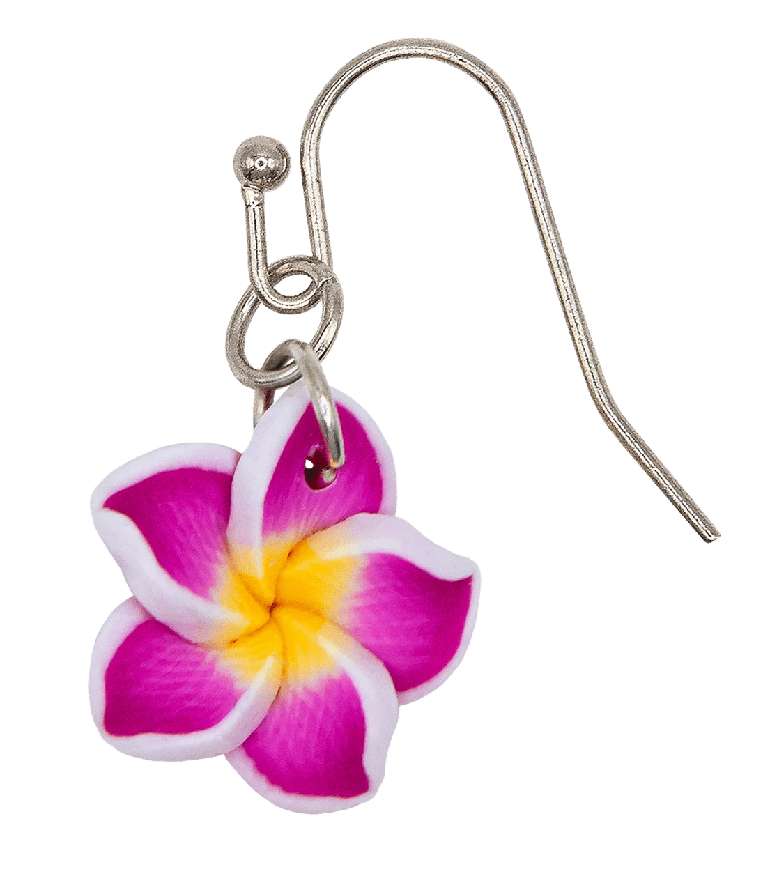 Handcrafted clay earring in the shape of a Plumeria flower
