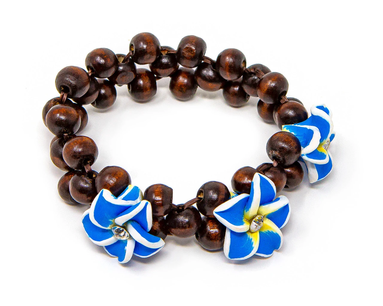 Three Plumeria Wood Bead Bracelet