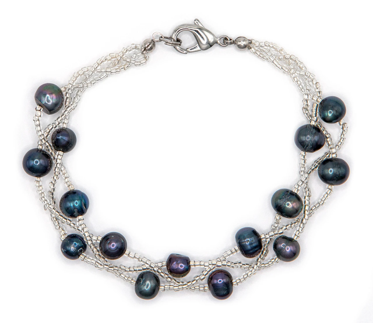 Twisted Torsade Freshwater Pearl Bracelet: Black