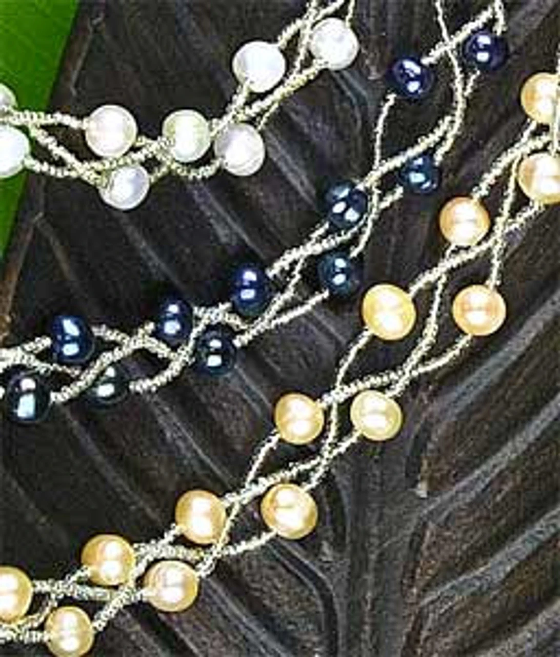 A lively display of natural beauty, strands of freshwater pearls shimmer upon a twisting torsade-style string.