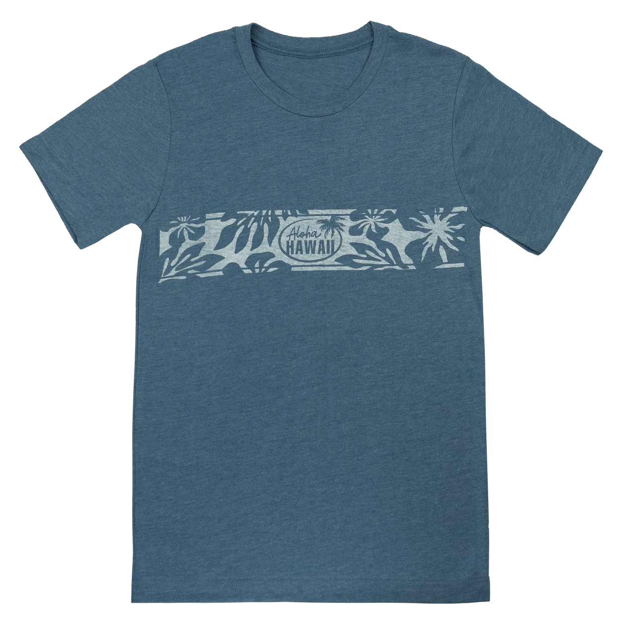 “Aloha Hawaii” in a vintage monstera leaf and hibiscus stylized print.